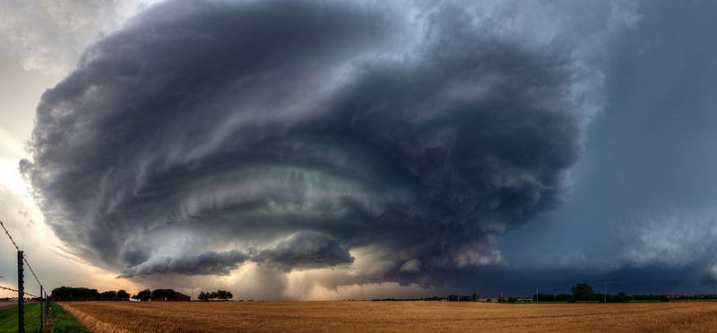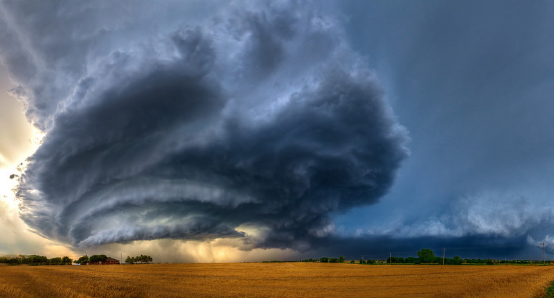 I chased with my good friends Zack Biggs and Justin Terveen. We initially targetted the area near and North of Clinton, OK as the most likely point for storm initation. Overall shear looked great although low level shear was somewhat weak. Our first storm fired just south of Fairview, OK. We dropped south to highway 51 and moved to just East of OKeene to watch the cell is it quickly developed into a high based supercell. The entire armada of Project Rotate showed up a few minutes later as the storm developed strong rotation and a well defined wall cloud. The base of the storm was too high at this point for a tornado to form but it sure was amazing to see. Rather than core the storm we went south of 8 and East on 0720 towards Dover. We were able to stop periodically to shoot the beautiful structure of the storm. Still lots of rotation but still too high for any tornados that we saw. We continued to drop south eventually ending up just south of Kingfisher. We had a decision to make here as a very strong anticyclonic storm was coming up from the south and looked to intercept our cell. We made the decision to press on through Piedmont and managed to beat both cells to just south of town. It was there that we witnessed some of the most incredible structure I have ever seen in a storm as the southern storm crashed into the storm we had been chasing all day: