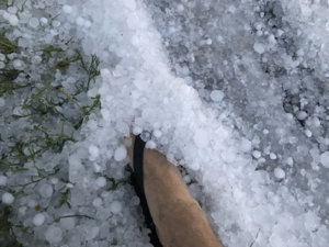 I watched a storm initiate by Lovington, NM and it initially struggled, but as it moved north-northeast toward the Texas border, it was finally starting to turn into a supercell. As I crossed into Texas, I drove through Bledsoe and saw some hail "drifts" on the side of the road: