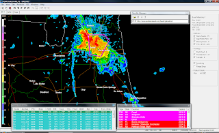 The storm gradually continued its left turn and accelerated slightly, but continuing to ride the seabreeze. At about 2050z the first reports of a tornado were noted. At 2055z, my partner, Dr. Maniaci, contacted me stating he was staring at a large tornado on the ground (which, after my lackluster season this past year, was something I felt was poor form to tease me about). After a minute of me convincing him that he was hallucinating, he said, "Go LOOK!"