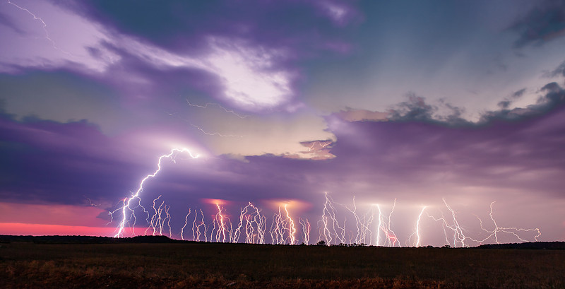 As you can see, all my recent ones with my DSLR always turn out the same in regards to color. Any ideas on how to enhance the colors of these lightning shots? It just all seems to be that purple color, and I cannot get any background or foreground elements to show up